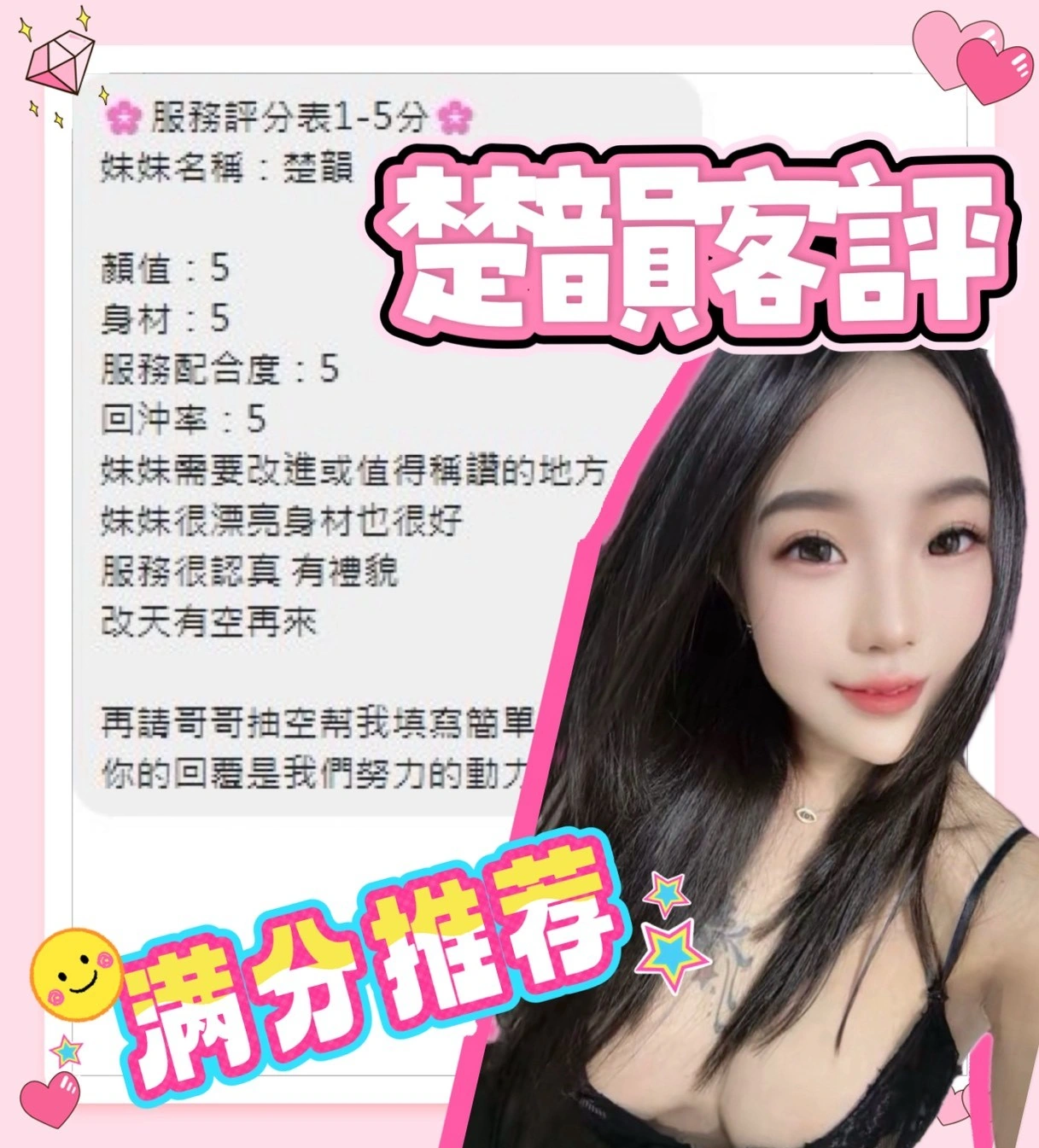 奶砲,毒龍,按摩,69,共浴,泰國浴,LG(舌吻)依氣氛衛生而定,可親嘴,無套吹,口爆,品鮑,舔蛋,奶推,屁推,冰火,顏射,絲襪(自備免付),玩具(按摩棒),玩具(跳蛋),情趣用品(客自備),快餐,2S,包夜