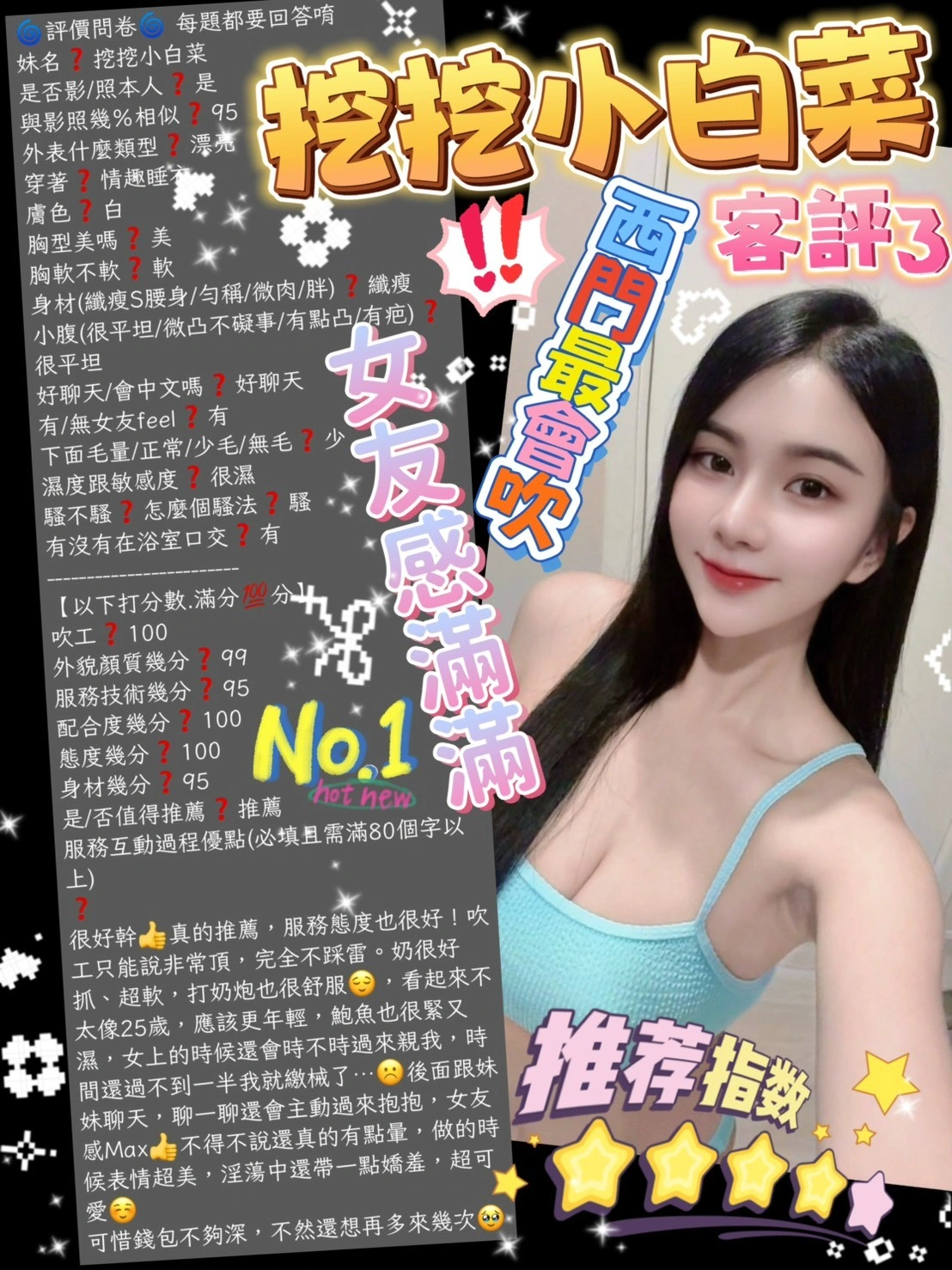 2S+500送口爆(60分),跳跳糖+100,絲襪+100,口爆+500,清槍+500,口爆清槍+800,顏射+500,自慰秀+500,情趣用品+500(客自備),原味內褲+1000,攝影+500(不露臉)