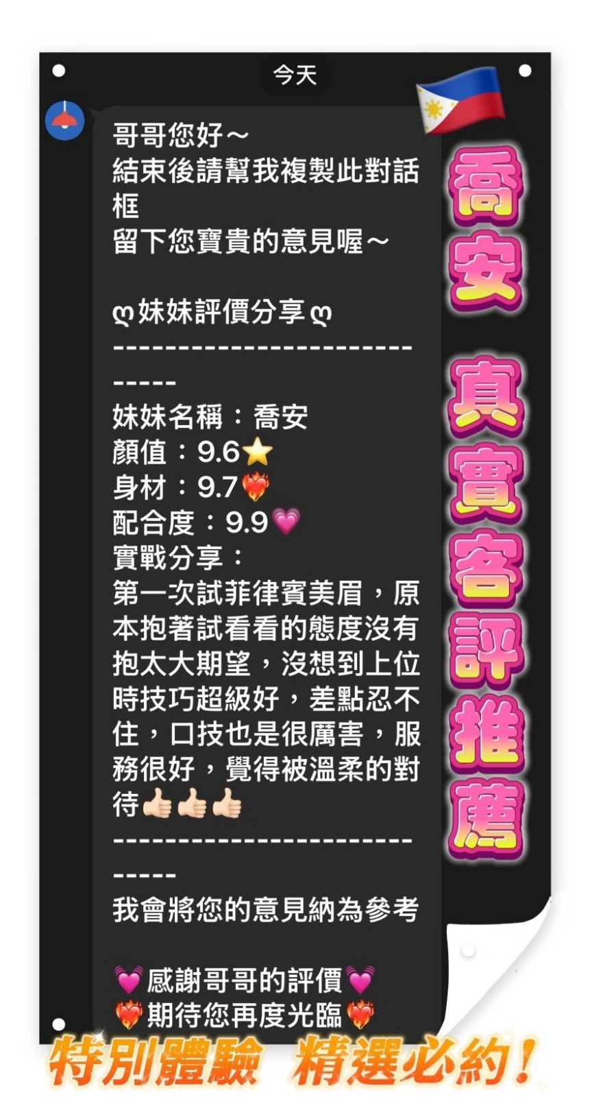奶砲,69,殘廢澡,LG(舌吻)依氣氛衛生而定,可親嘴,無套吹,品鮑,絲襪(自備免付),快餐,2S,NS