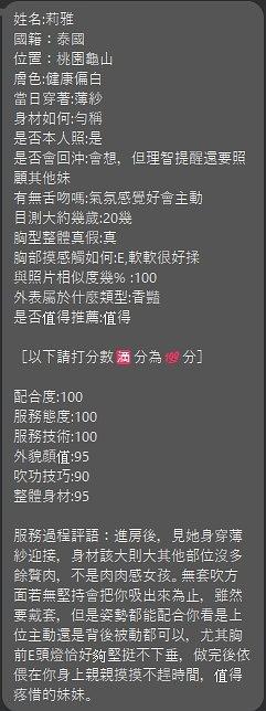泰國桃園 (龜山區) 25 歲 167 cm 50 kg E cup 莉雅