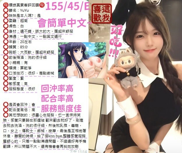 越南台中 (西屯區) 18 歲 155 cm 45 kg E cup YuYu