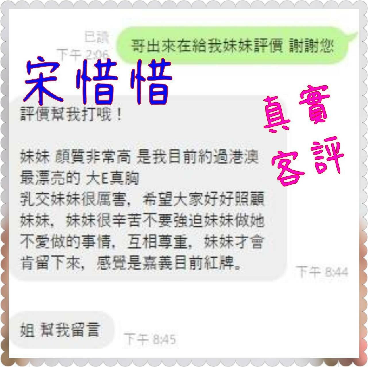 港澳嘉義 (西區) 25 歲 165 cm 49 kg E cup 宋惜惜