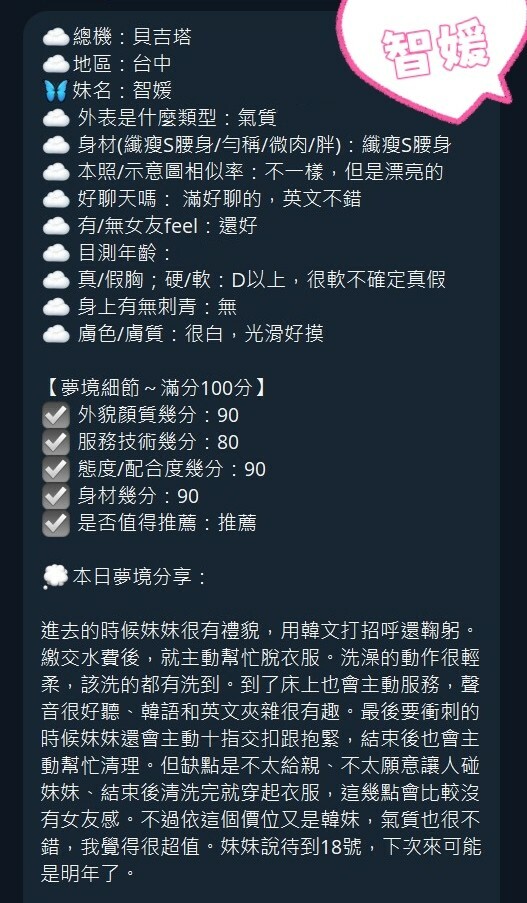 韓國台中 (北區) 24 歲 160 cm 40 kg E cup 智媛